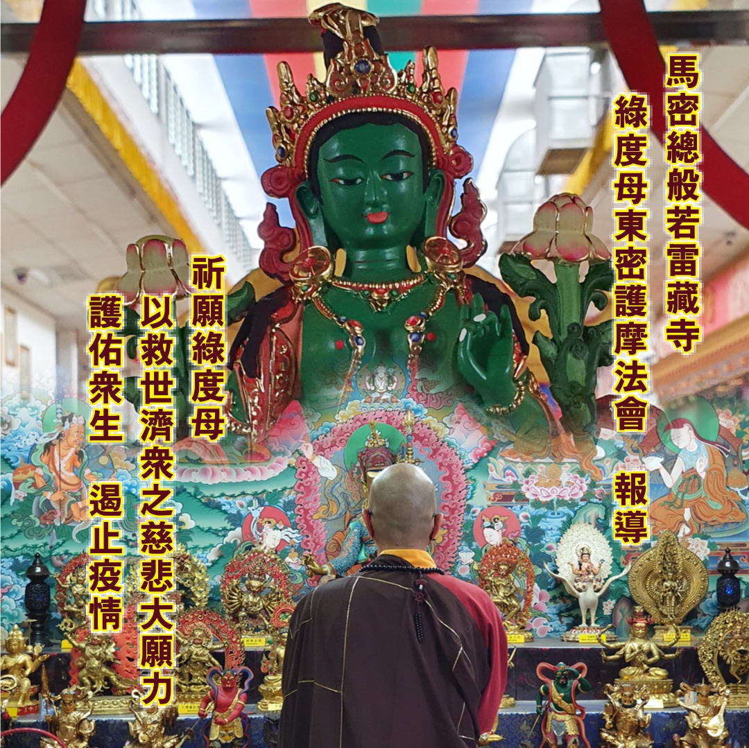 為呼應宗委會7月14日蒙師佛指示以綠度母為主尊,為全球災難迴向,馬密總般若雷藏寺於2021年9月3日舉辦了南摩綠度母東密護摩火供法會。此次護摩法會恭請釋蓮夫上師主壇,維那則由釋蓮孩法師擔任。
